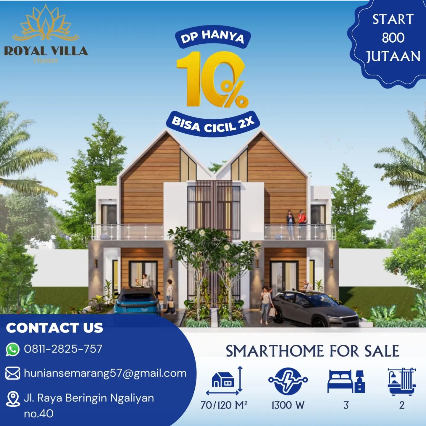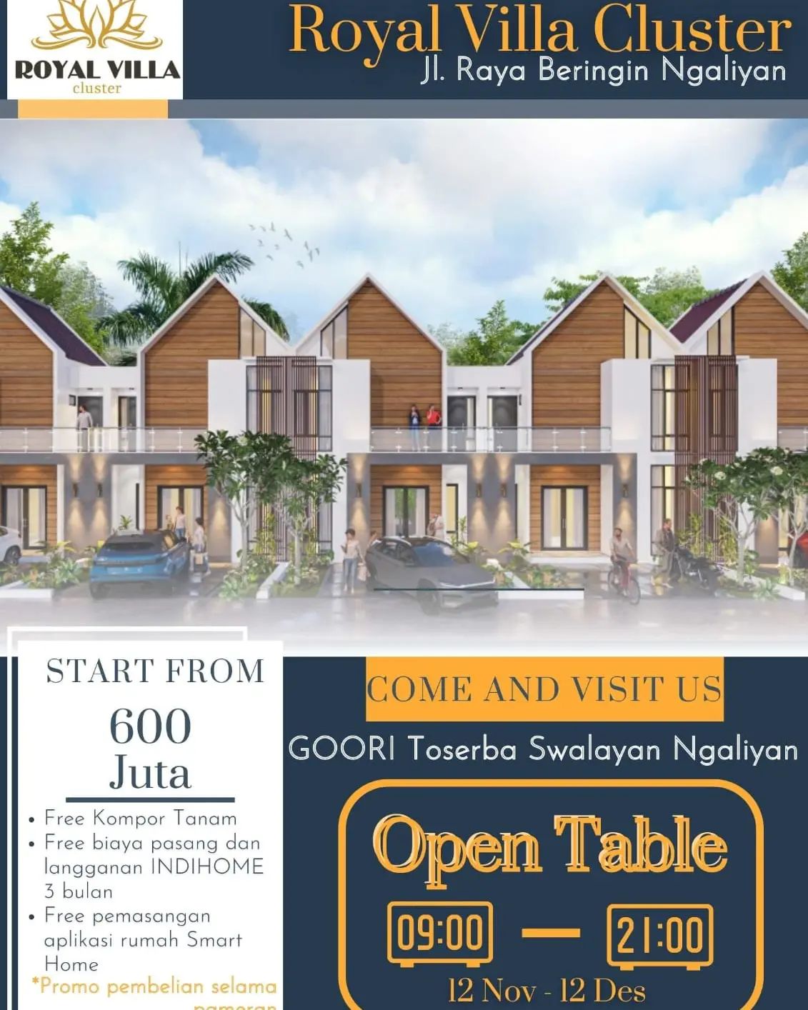 Rumah Ready Stok. Cluster Royal Villa Lokasi strategis berada di lingkungan yang sudah terbentuk dilalui angkutan umum, cocok untuk hunian dan investasi. Berlokasi di Jalan Raya Beringin, No.40, Ngaliyan, Semarang Barat, Lokasi yang berkembang, dekat kemana-mana dan bebas banjir. Dekat BSB, Dekat Kawasan Industri Candi, Dekat Rumah Sakit, Swalayan, Pasar, Sekolah, dan fasilitas umum lainya.